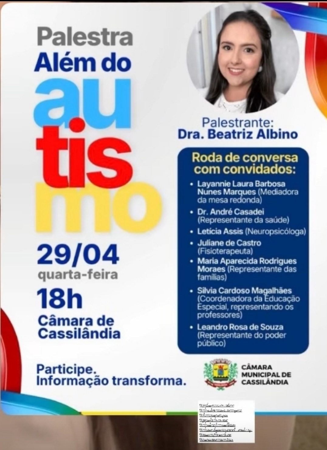 No último sábado, 25, a cidade de Cassilândia promoveu a 1ª Caminhada pela Conscientização do Autismo e da Saúde, reunindo moradores, profissionais e instituições em uma jornada de união, informação e inclusão.